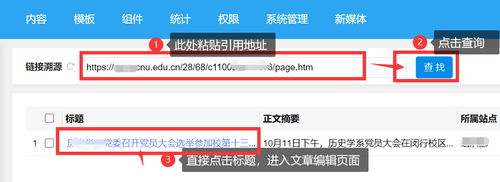 二、在地址内输入需要查找的文章地址,比如文章中给出的“引用地址”,查找,找到文章进入编辑状态